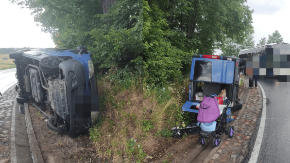 Do groźnie wyglądającego wypadku doszło na drodze krajowej nr 59 we wsi Zalec (woj. warmińsko-mazurskie). Bus wjechał do rowu i przewrócił się na bok. Pojazdem podróżowało dziewięć osób, w tym sześcioro dzieci. Na szczęście w zdarzeniu nikt nie poniósł obrażeń.