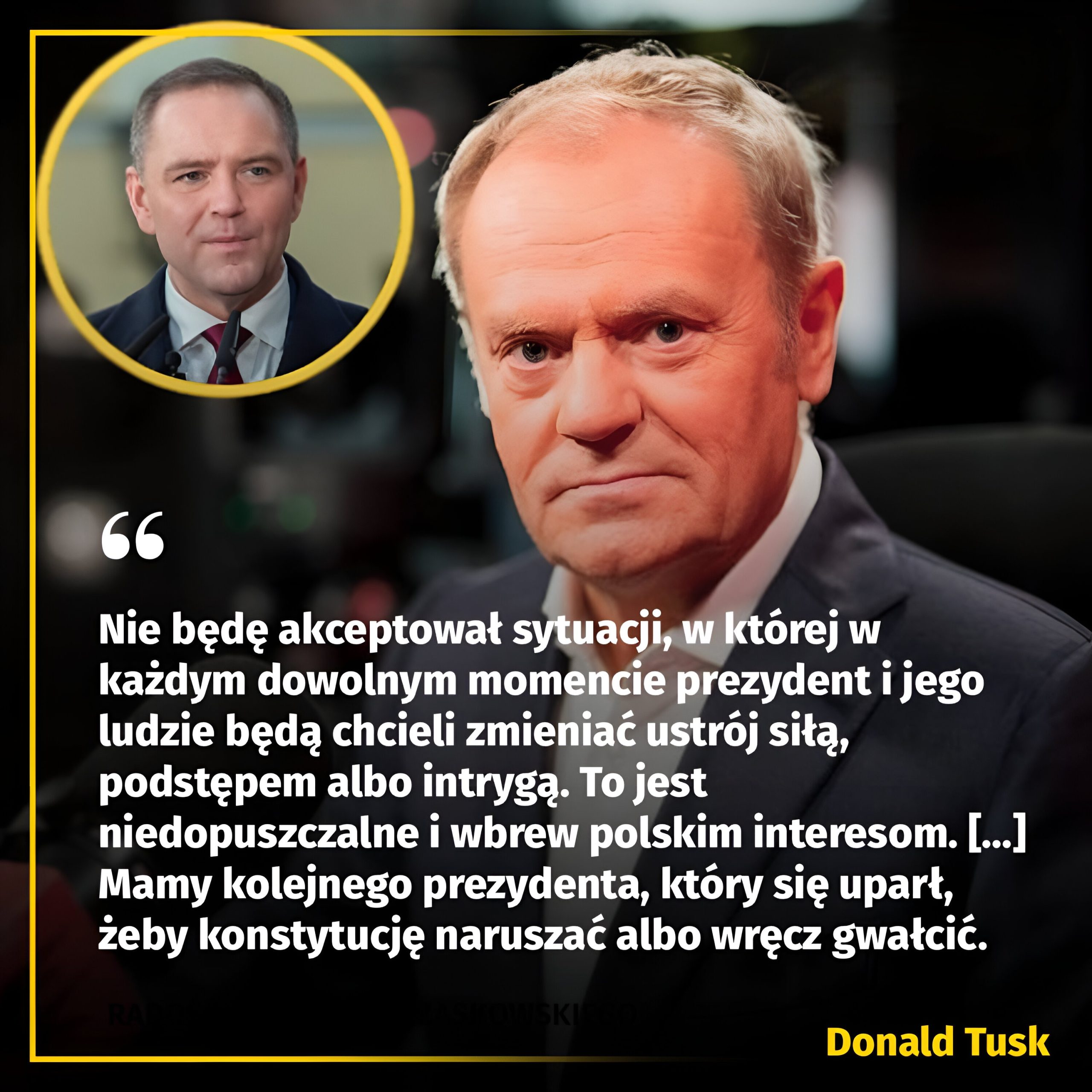 — Mamy kolejnego prezydenta, który się uparł, żeby konstytucję naruszać albo wręcz gwałcić — powiedział w czwartek premier Donald Tusk, krytykując Karola Nawrockiego. Zdaniem szefa rządu obecnie w Polsce dochodzi do nadużywania władzy i kompetencji przez prezydenta i jego otoczenie.