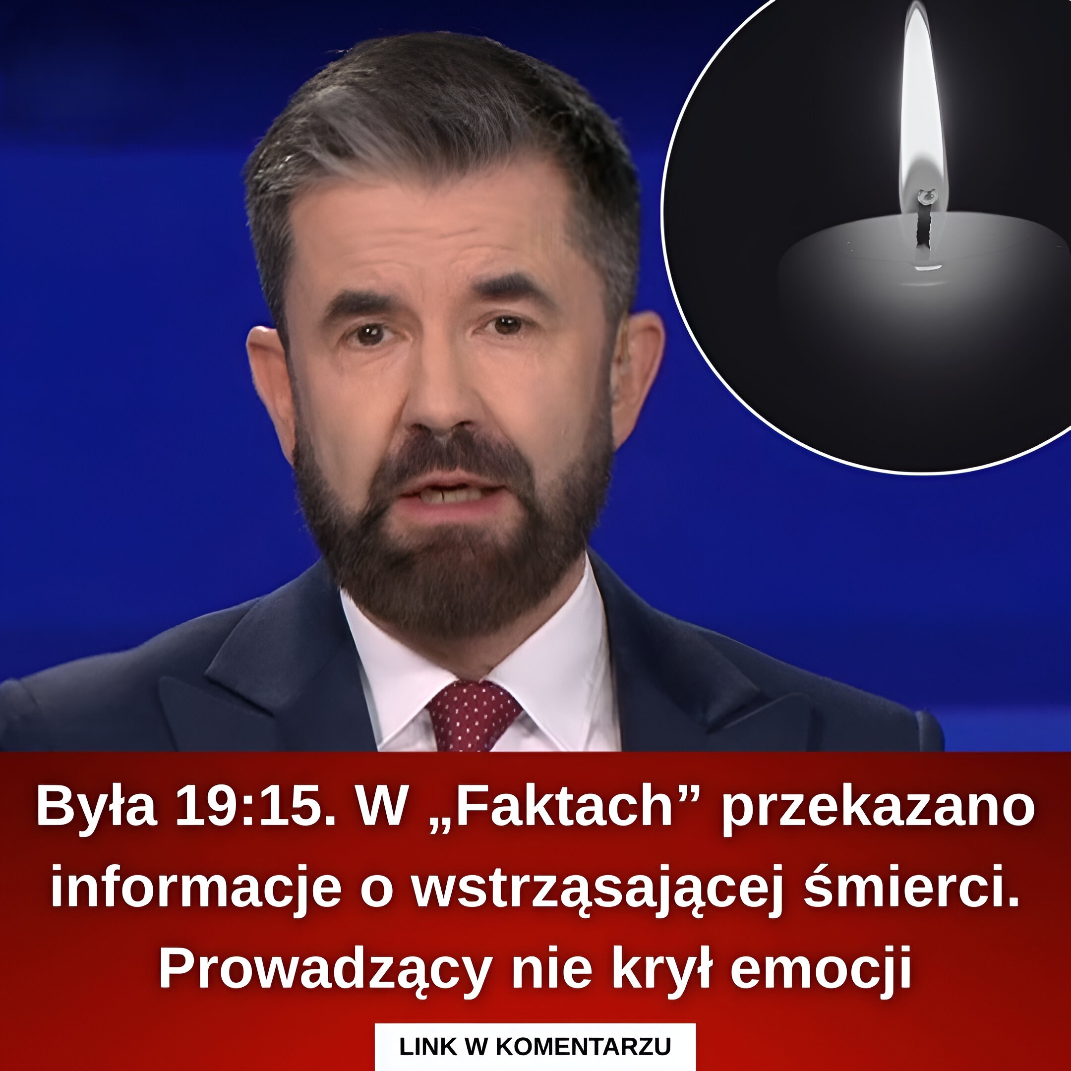 Wieczorne wydanie „Faktów” TVN rozpoczęło się w poniedziałek jak zwykle — spokojnym, rzeczowym tonem i przeglądem najważniejszych wydarzeń dnia. Jednak dokładnie o 19:15 atmosfera programu uległa nagłej zmianie. Po serii informacji ze świata prowadzący przeszedł do wiadomości z kraju, która natychmiast przykuła uwagę widzów i nadała całemu wydaniu zupełnie inny, znacznie bardziej poruszający charakter. Przekazano informację o tragicznej śmierci, która wstrząsnęła opinią publiczną i poruszyła zarówno prowadzącego, jak i tysiące osób przed telewizorami.