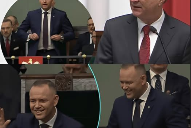 Położył rękę na sercu w geście podziękowania, po czym z szerokim uśmiechem machał do wiwatujących parlamentarzystów, co na sali odebrano jako manifestację siły i jedności jego obozu. Ta demonstracja poparcia w samym sercu Sejmu stworzyła ostry kontrast z milczeniem strony rządowej, uwypuklając trudności, jakie niesie ze sobą obecna kohabitacja oraz głębokie pęknięcie w polskim parlamencie.